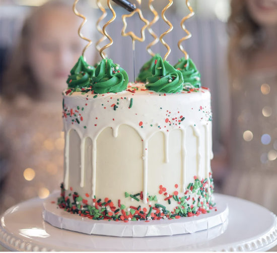 Make Christmas a parTREE with our Christmas Party Cake! This cheerful cake is topped with buttercream trees and festive sprinkles. Candles sold separately.