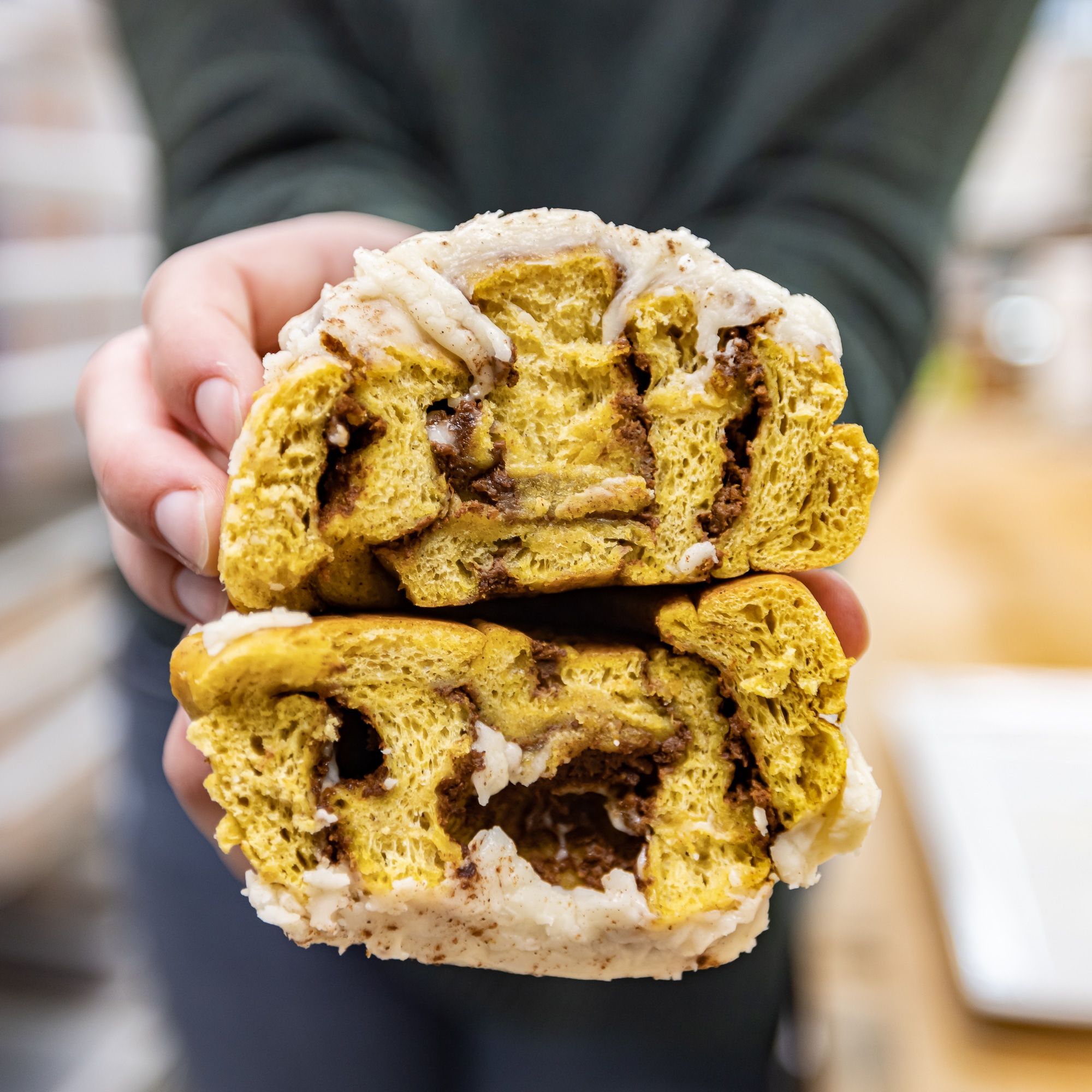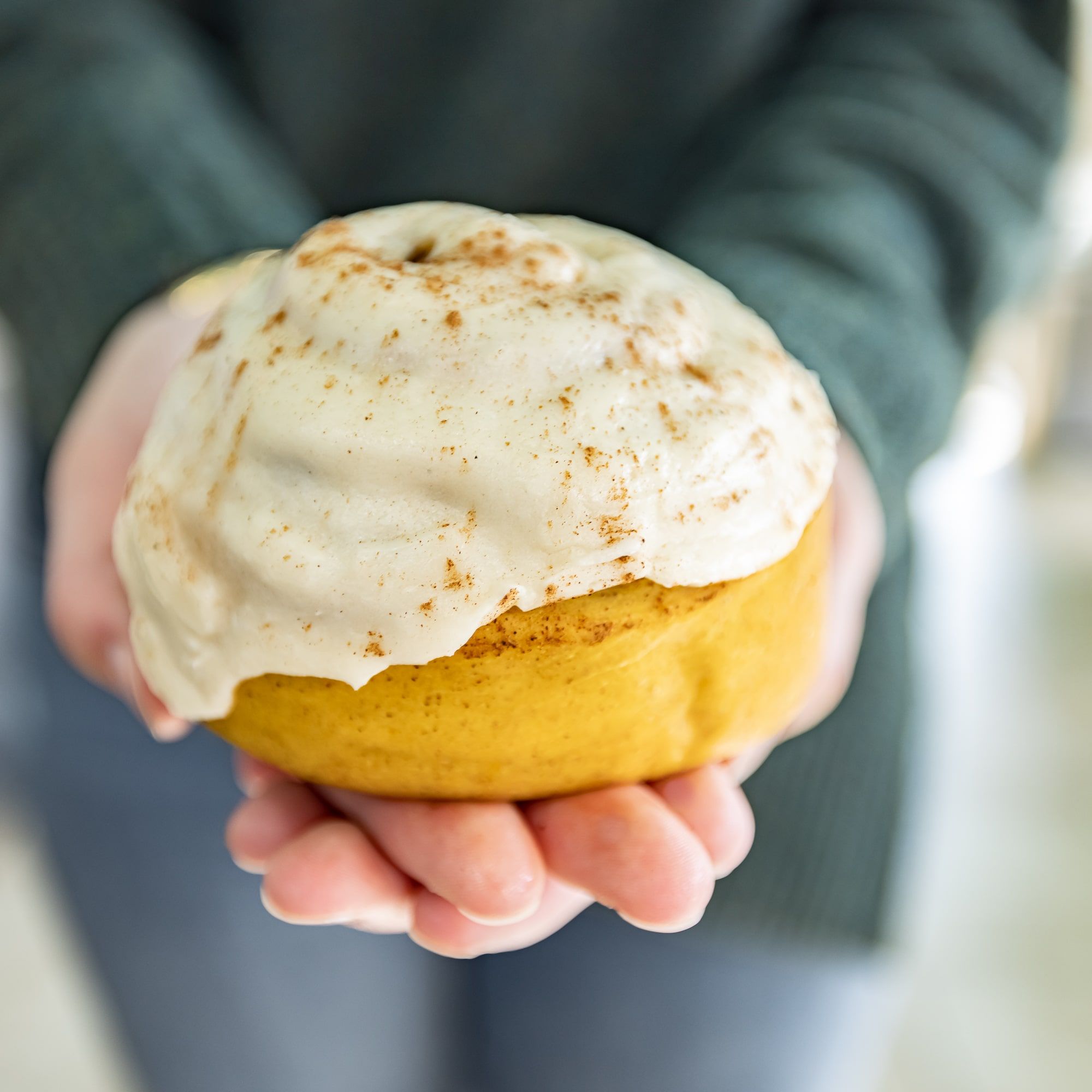 These fresh home made cinnamon rolls are incredible to share, or not! Large cinnamon rolls topped with our signature vanilla cream cheese buttercream.