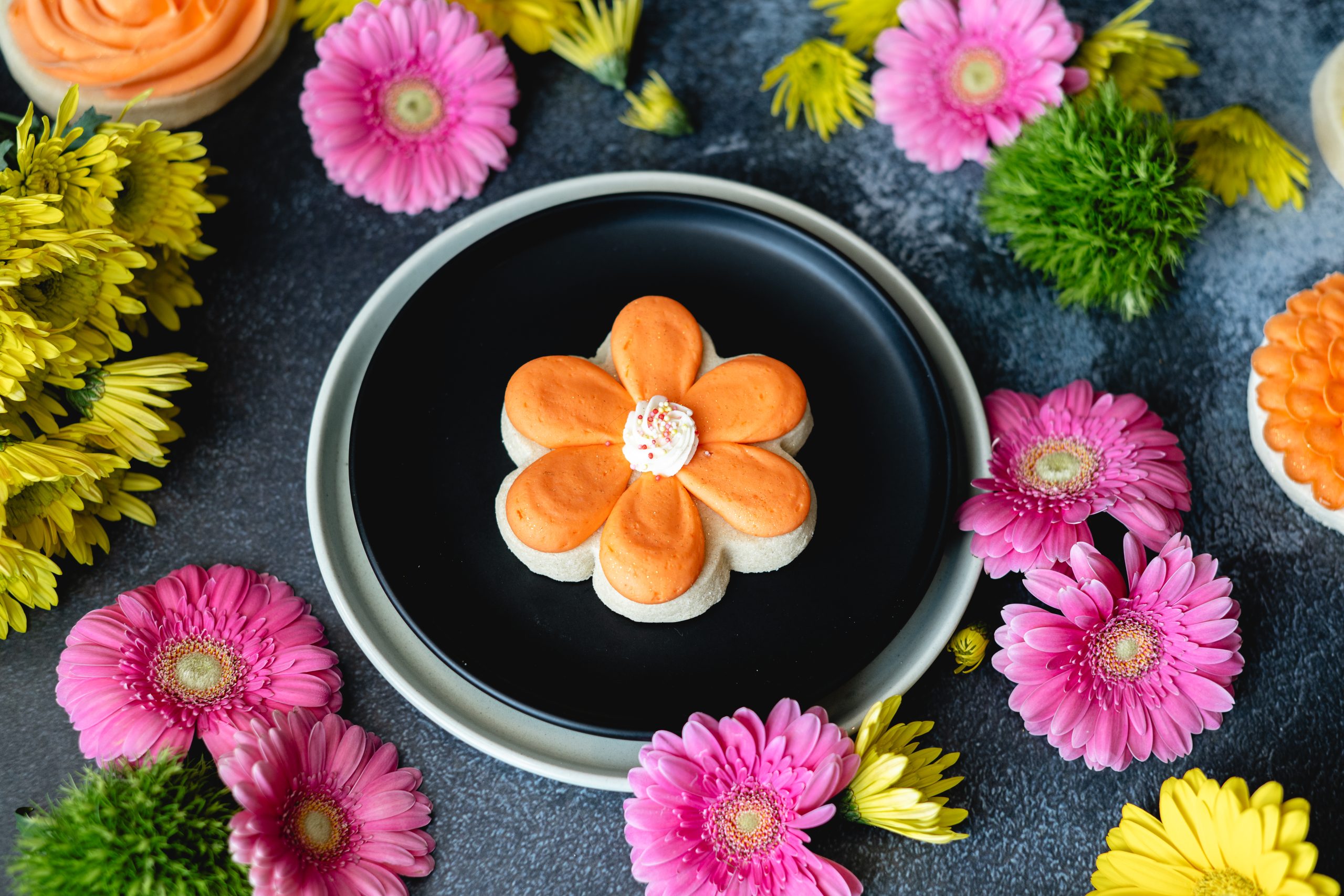 Here we have a dealers choice preference on buttercream sugar cookie designs. You can pick just one style of floral buttercream cookie or do an assortment of each design. We can also do any of these designs gluten free.