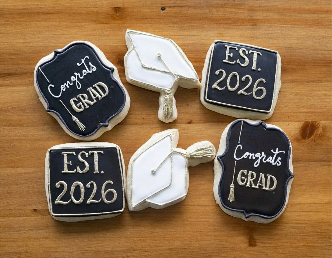 Assorted cookie designs for your Graduation for 2026!