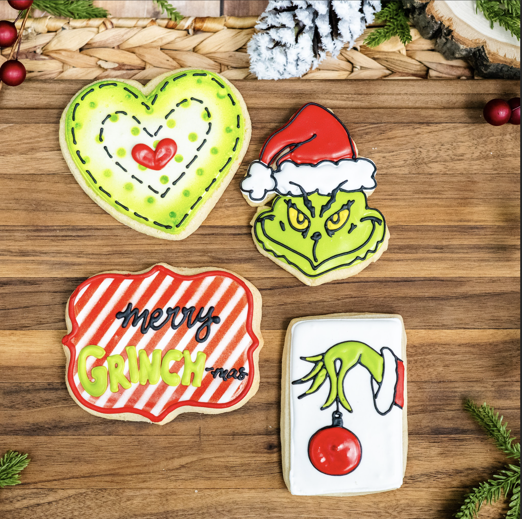 Merry Grinch-mas! Royal iced sugar cookies decorated in a Grinch theme!