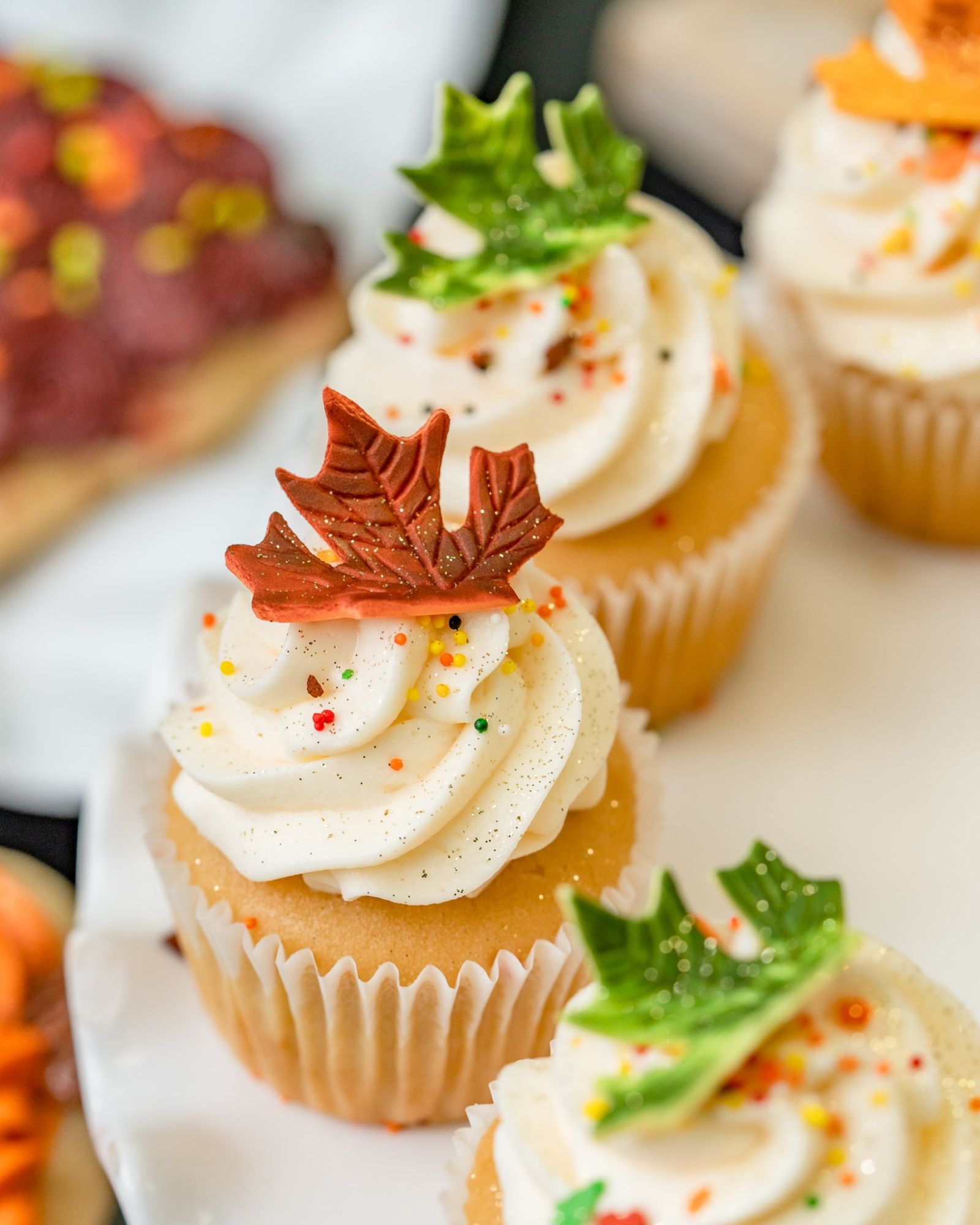 Fall into this delicious pile of autumn leaf cupcakes! Available in any flavor, these cupcakes will be raked up fast, call or click to get your order placed today!