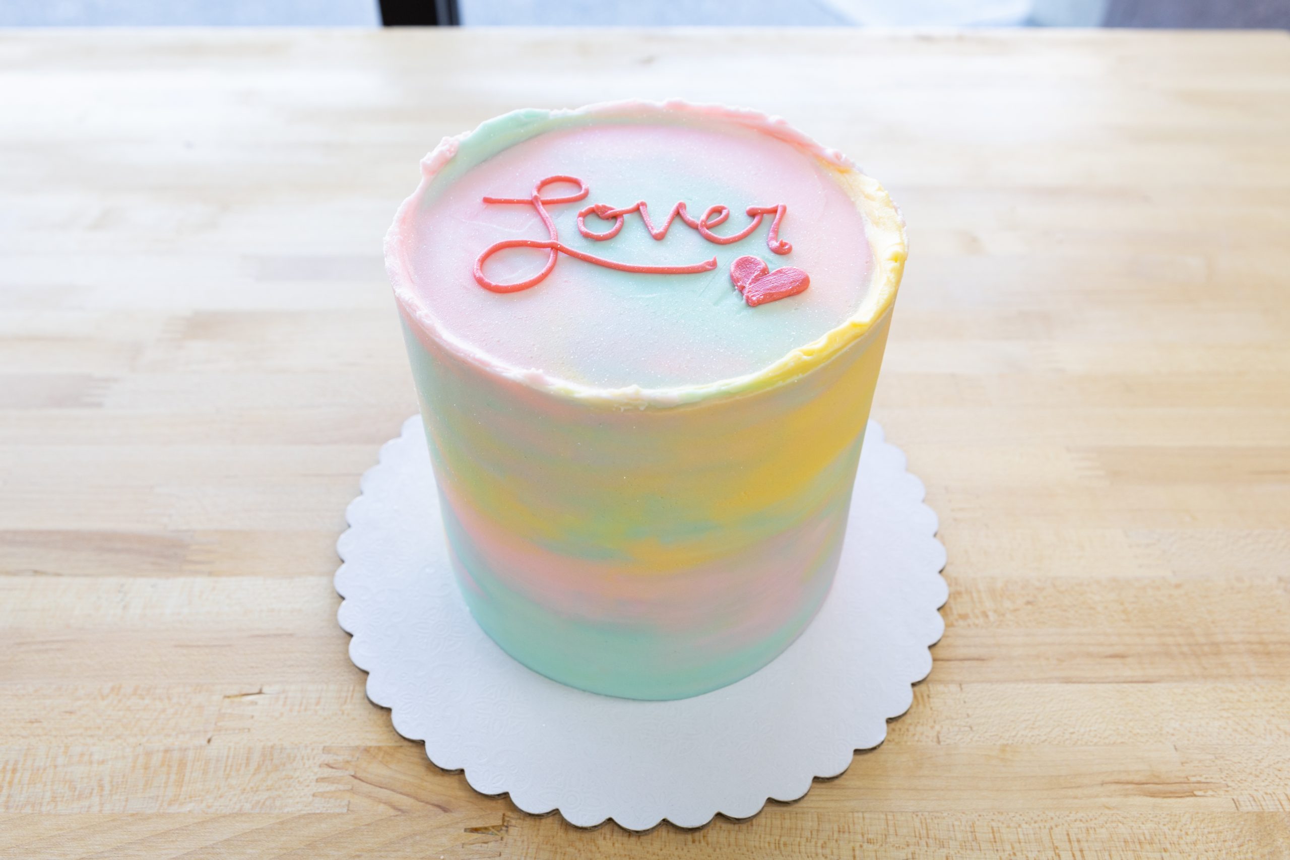 Celebrate the Lover in your life with this Taylor Swift Lover Era inspired cake! Pastel colors with the era title piped on top! Perfect for anniversaries!