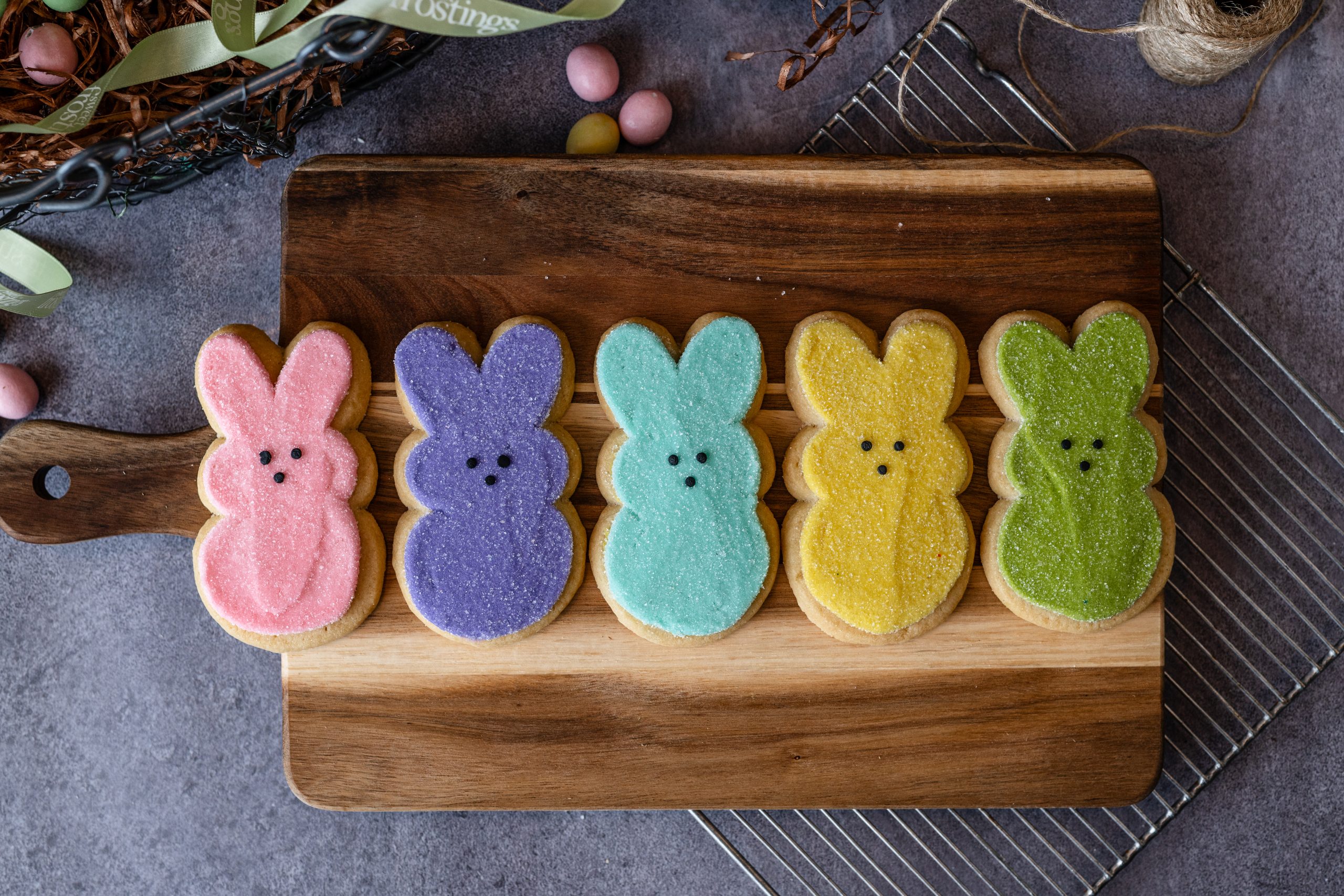Hoppy Easter! These adorable Peep inspired bunny cookies are buttercream cookies handmade and decorated by cookie artists just for you! In-store through Easter.