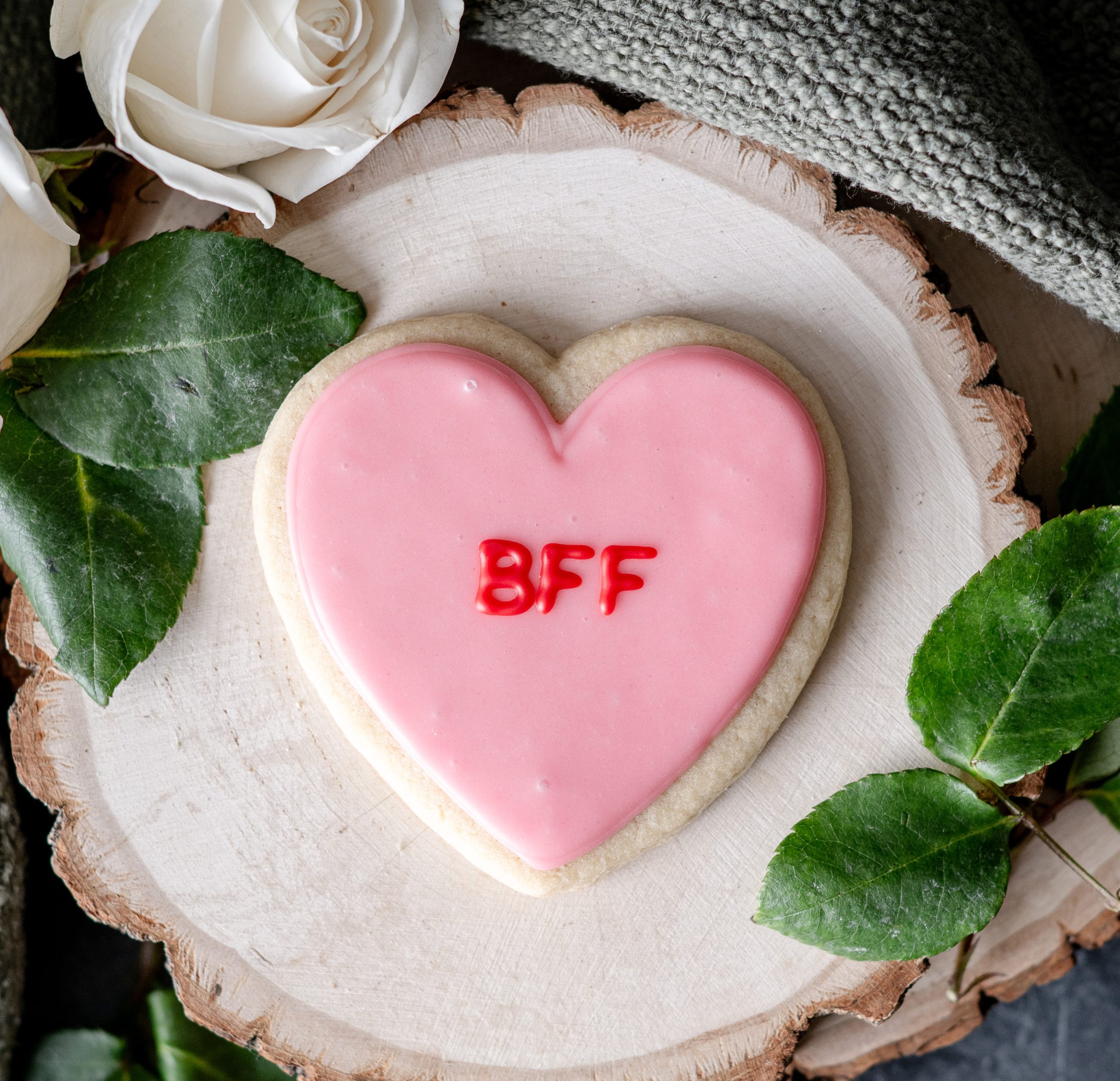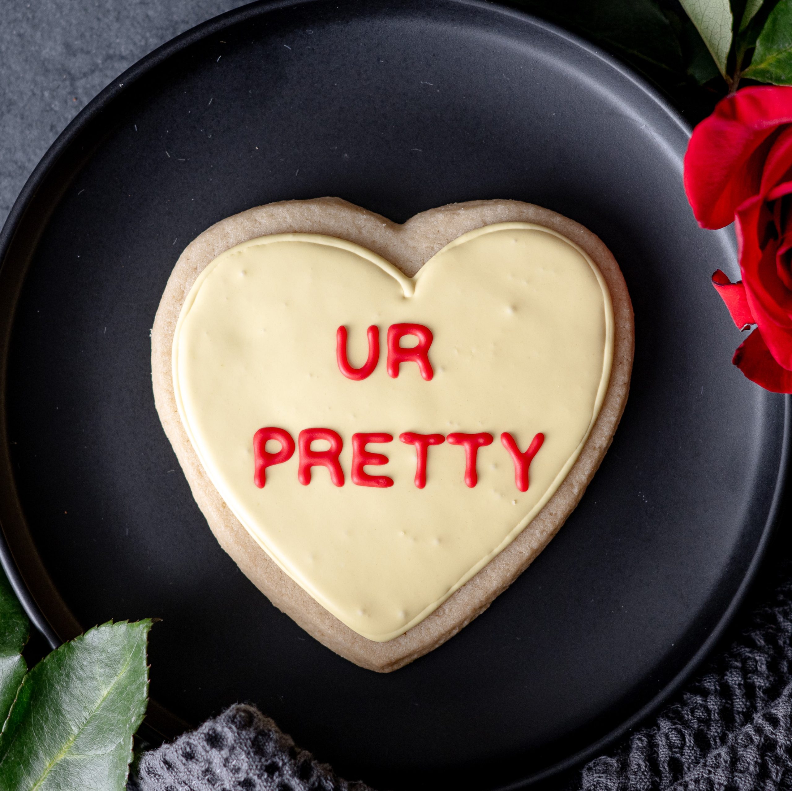 The tastiest of all conversation hearts! Four cookies included. These vanilla sugar cookies are made to order with royal icing & little affirmations. If you would like your own colors or messages, fill out a custom request here