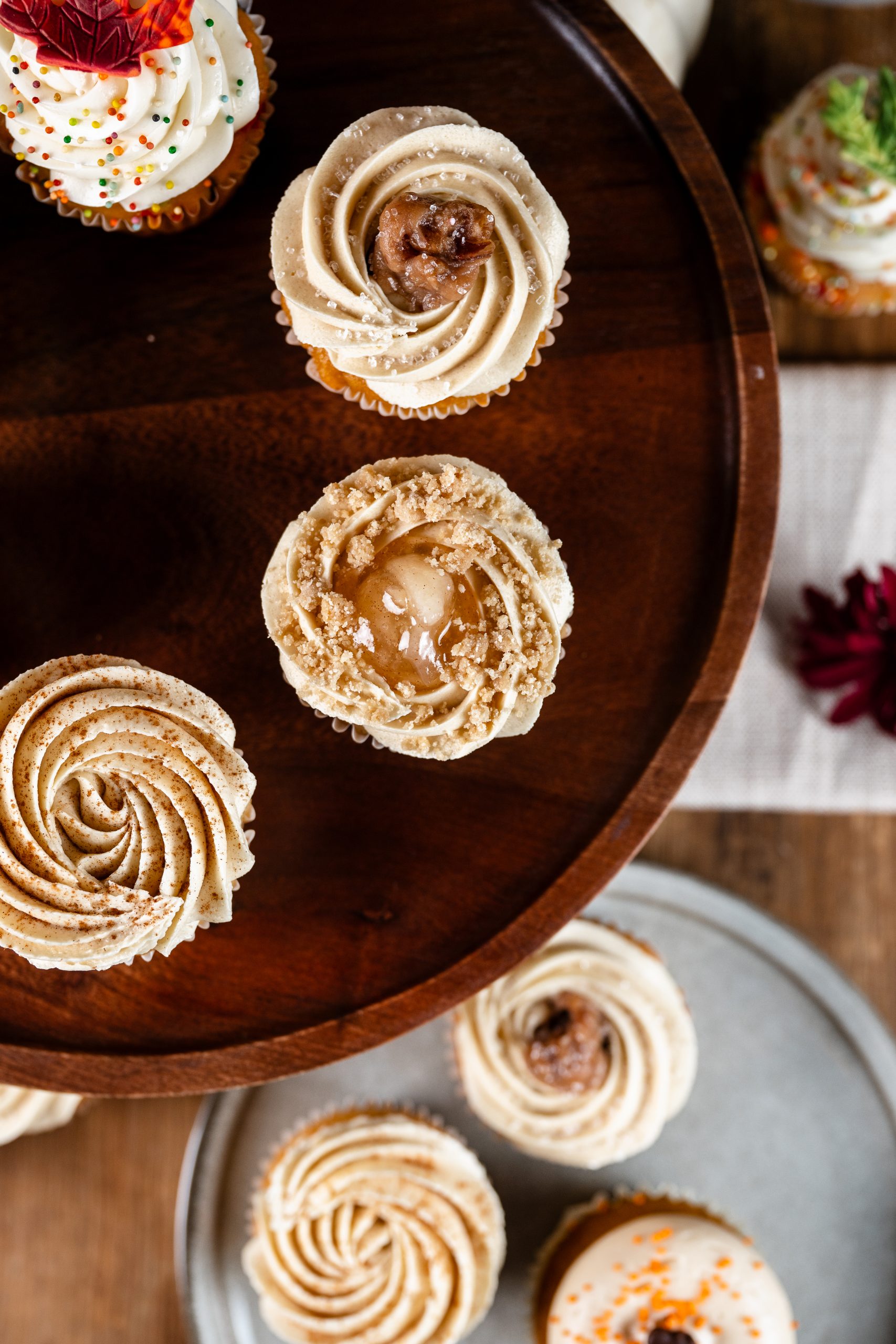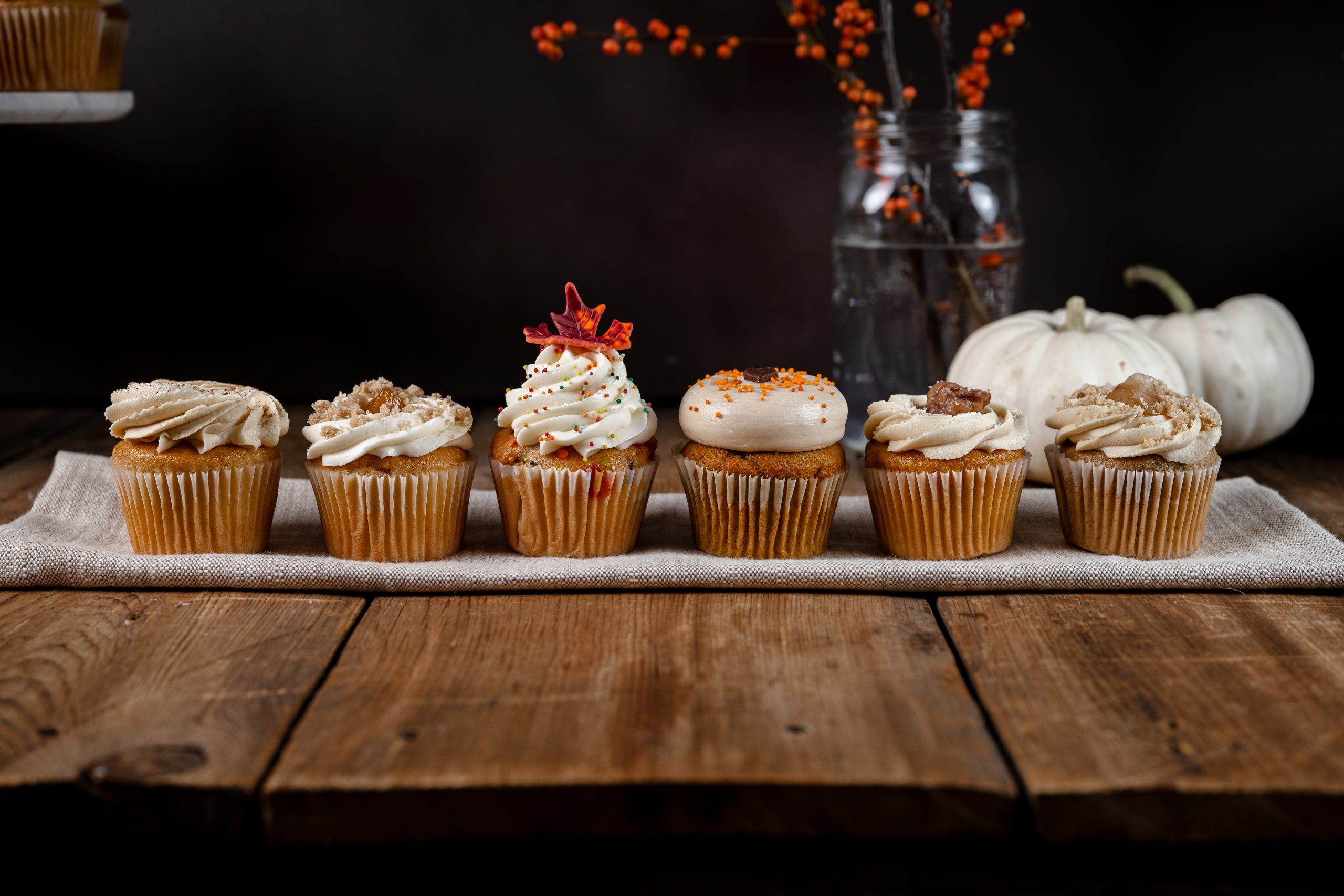 Six of our very favorite Fall flavors, just in time for Thanksgiving! Included flavors are Hot Buttered Rum, Peach Cobbler, Fall Fetti, Pumpkin Maple, Pecan Pie, and Brown Butter Apple pie cupcakes!